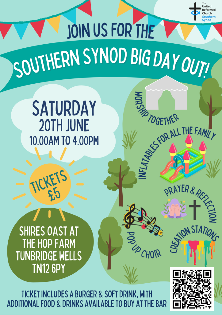 Below is the poster promoting the Synod Fun Day to which churches across the Synod are invited and which will provide opportunity to meet with others who are part of the Synod wide URC, beyond the local church. We are trying to determine who will be going from Gillingham URC and will be asking for an idea of numbers over the next few weeks.